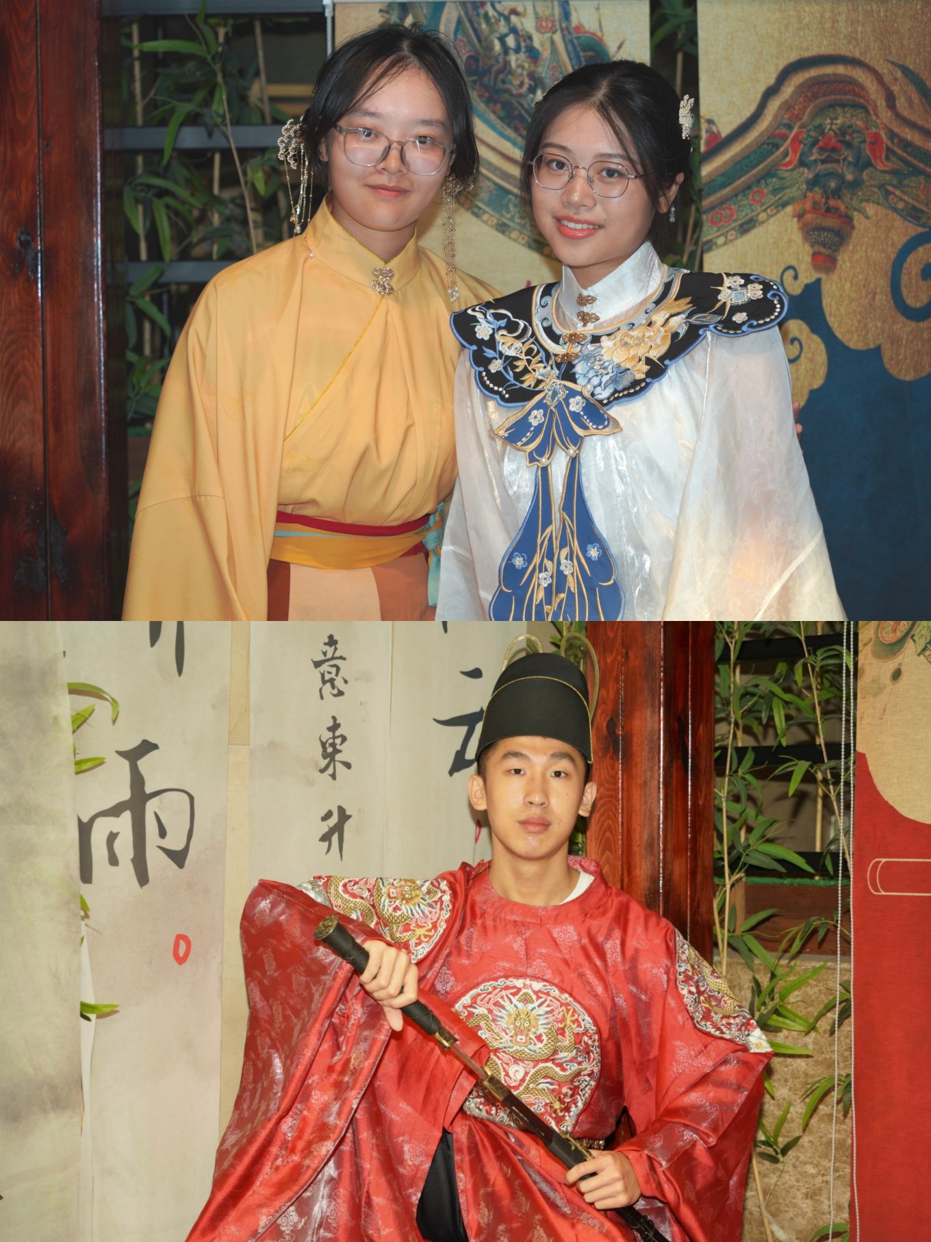 在書店專屬的漢服空間內(nèi),“漢服文化體驗”環(huán)節(jié)備受矚目。瓊?cè)A漢服社成員身著漢、唐、宋、明等各朝代傳統(tǒng)服飾,在書架間漫步穿梭,宛如一幅幅“流動的傳統(tǒng)文化畫卷”;學(xué)子們則在社團(tuán)成員的耐心指導(dǎo)下試穿漢服、學(xué)習(xí)揖禮等傳統(tǒng)禮儀。隨后,大家走進(jìn)“南強(qiáng)打卡亭”,以書架為景、以墨香為襯,定格與傳統(tǒng)文化同框的美好瞬間,讓“漢服+書香”成為校園里的新風(fēng)尚。